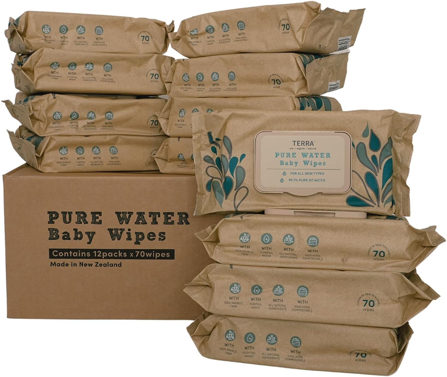840 Count NZ Pure Water Baby Wipes - Pure New Zealand Water - Biodegradable Bamboo - Fragrance Free for Sensitive Skin